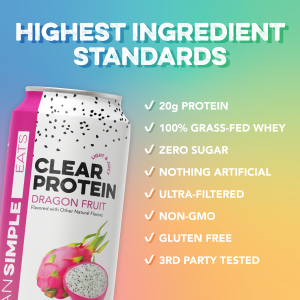 AMAZING BENEFITS: ?Clean Simple Eats Clear Protein Drinks are brimming with 20 grams of grass-fed. ultra-filtered whey protein isolate and zero artificial ingredients. It’s low-lactose and gentle on digestion. Experience the clear difference.